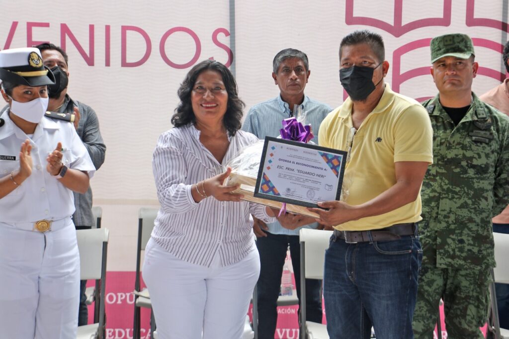 La presidenta municipal, Abelina López Rodríguez, entregó reconocimientos por su participación a las Escuelas Primarias “General Baltazar R. Leyva Mancilla”, Eduardo Neri” y “Héroes de Chapultepec”, así como a la Telesecundaria ““Belisario Domínguez”.