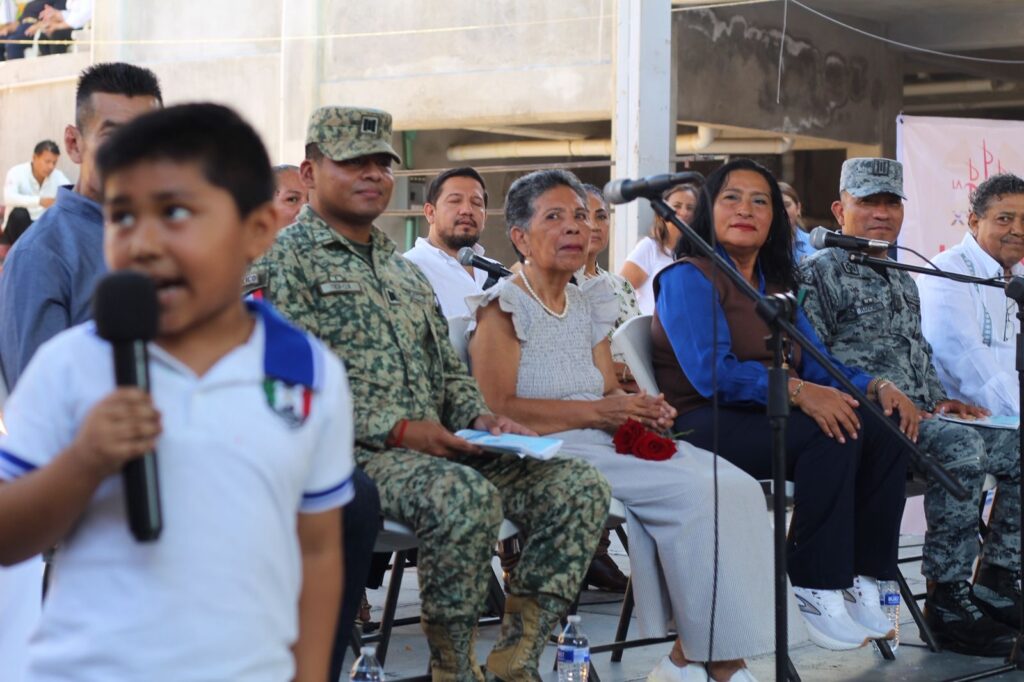 Durante el acto, la presidenta municipal entregó una presea de reconocimiento a la directora del plantel, Guadalupe Córdoba Dorantes, por la participación de la escuela en el Festival Internacional La Nao Acapulco 2025 y por su compromiso con la promoción de la lectura y la cultura entre la niñez acapulqueña.