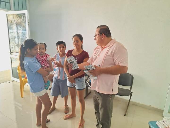 Con el apoyo de alumnos de la Universidad Benito Juárez, fortalecieron la entrega de abate en las viviendas del lugar, asimismo, el personal entregó cloro para la limpieza y desinfección.