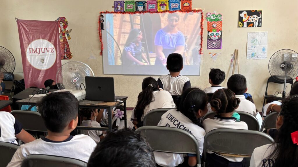 A través del Instituto Municipal de la Juventud (IMJUVE) se proyectaron películas como Encanto, El Gato con Botas y Luca a 300 alumnos de la escuela primaria Emiliano Zapata. La titular Angelica Díaz Rojas explicó que ha sido instrucción de la Presidenta acercar estos programas a todas las colonias y comunidades.