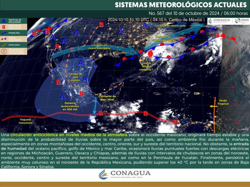 Acapulco, Gro., 10 de octubre del 2024.- Ante la presencia de un canal de baja presión que se ubica sobre el noroeste y occidente del país en interacción con la entrada de humedad del Océano Pacífico, Golfo de México y el Mar Caribe, el Gobierno Municipal que preside Abelina López Rodríguez informa a la ciudadanía que se pronostican lluvias puntuales fuertes en algunas regiones del estado. Para Acapulco se registra un