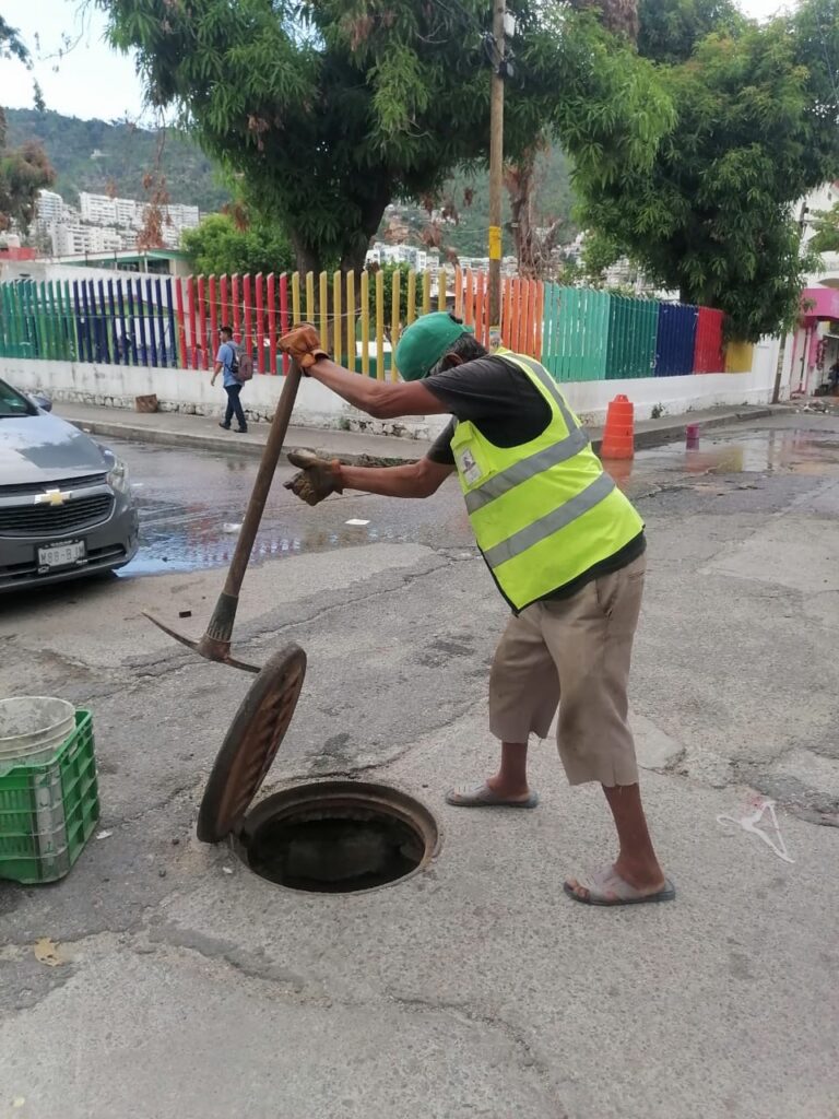 Acapulco, Gro., 13 de julio de 2024 Por instrucciones de la Presidenta Municipal Abelina López Rodríguez, la Comisión de Agua Potable y Alcantarillado del Municipio de Acapulco (CAPAMA) mantiene de manera permanente la brigada de desazolve de pozos de visita y colocación de brocales.
