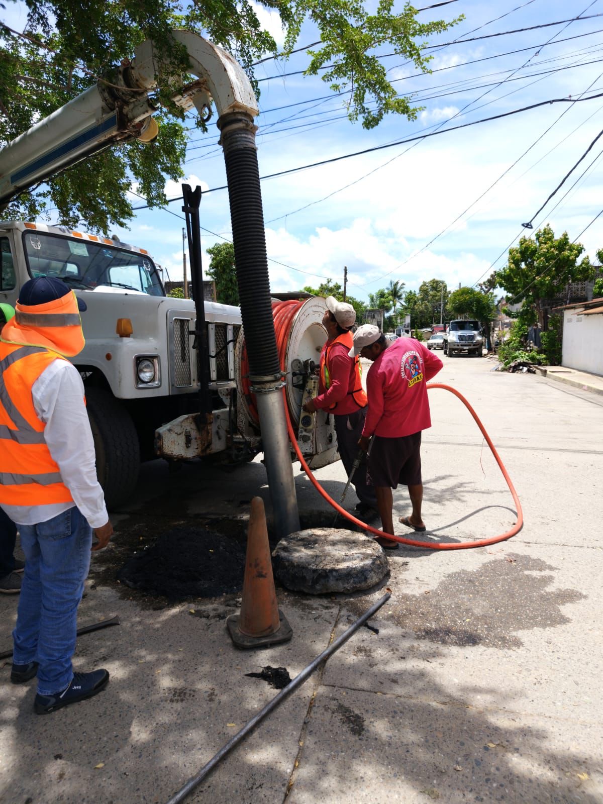 Mantiene Gobierno de Abelina brigada emergente de desazolve de pozos de visita
