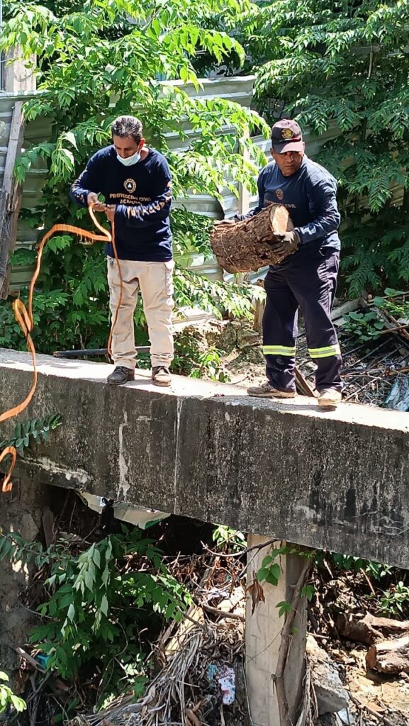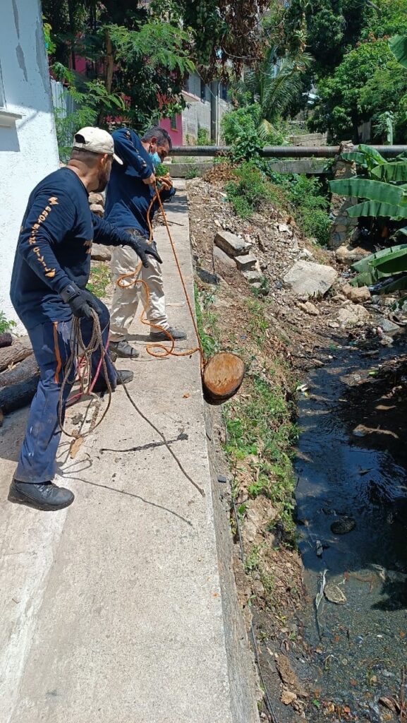 Acapulco, Gro., 07 de julio de 2024- En un trabajo conjunto con la Décimo Segunda Región Naval y el estado, el Gobierno Municipal mantiene trabajos de limpieza en el canal pluvial conocido como Barranca de La Laja y Presa Morteros, donde hasta este último sábado, se recolectaron más de 70 toneladas de residuos sólidos.