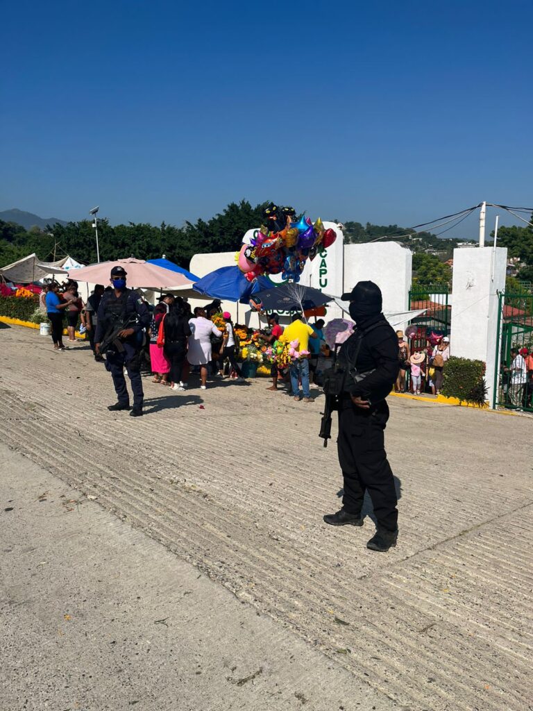 Acapulco, Gro., 02 de noviembre de 2022-* Como parte de las acciones que realiza el Gobierno Municipal durante la celebración del Día de Muertos, la Secretaría de Seguridad Pública realiza operativos de vialidad y protección ciudadana en los panteones más concurridos del municipio.