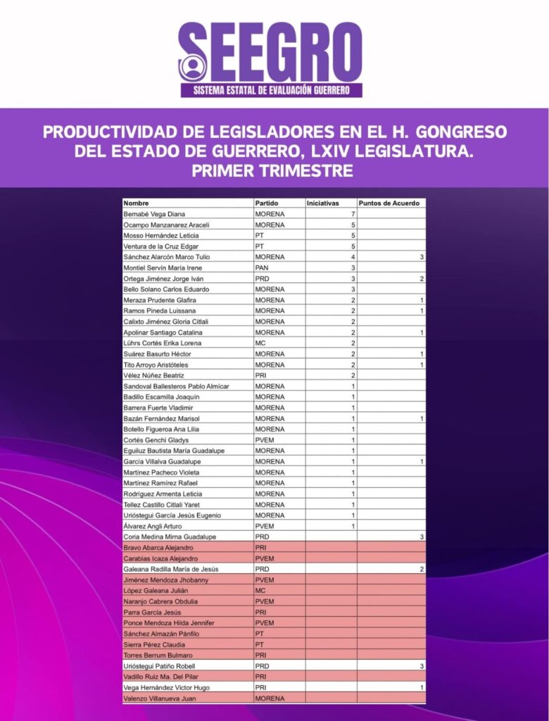 De acuerdo con el Sistema Estatal de Evaluación Guerrero, dentro de la productividad de los diputados de la LXIV Legislatura en el Congreso, en el primer trimestre del año, Marco Tulio Sánchez destaca por ser constante en su trabajo y estar comprometido con los ciudadanos guerrerenses.