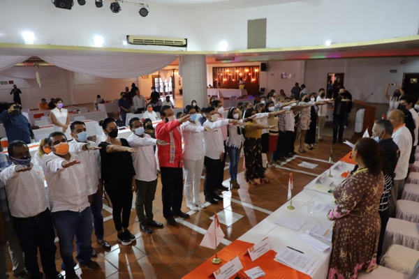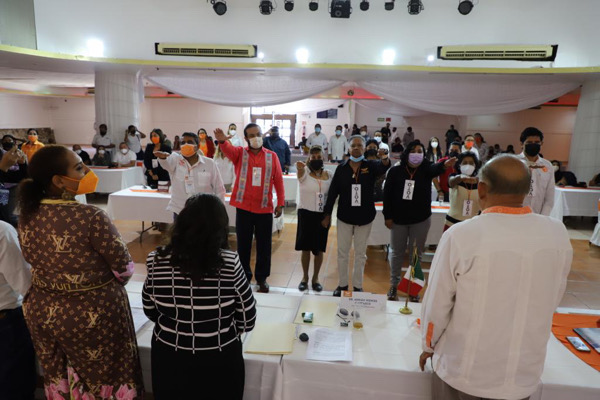 Por su parte el Comisionado Nacional de la cuarta circunscripción, Pedro Jiménez León, quien asistió con la representación de la dirigencia nacional, les tomó protesta a los nuevos delegados y delegadas que asistirán a la tercera Convención Nacional Democrática, de igual manera a los que sustituirán a algunos integrantes del Consejo Estatal, así como también de la Coordinadora Ciudadana Estatal y Comisión Operativa Estatal y durante su discurso dio a conocer que el partido va adecuar sus estructuras para llegar consolidados al 2024, para lo cual se debe cuidar la armonía, la unidad y el respeto dentro de este gran movimiento”.