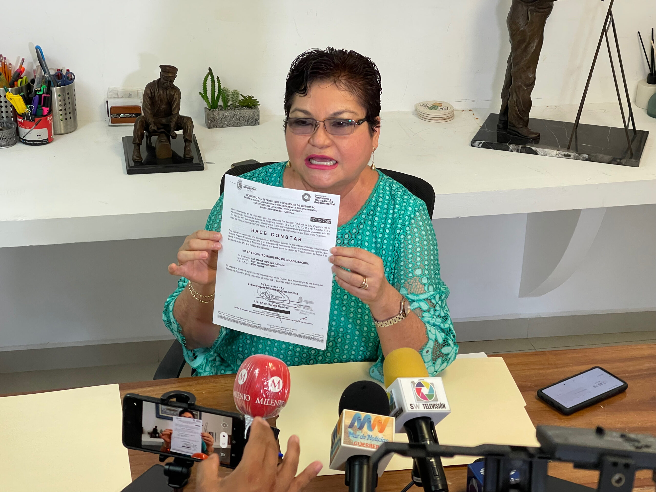 La ex secretaria de Desarrollo Urbano y Obras públicas del municipio de Acapulco, Luz María Meraza Radilla, aseguró que no se encuentra inhabilitada y negó actos de corrupción por su parte, tal como comentó un reportero ante el presidente Andrés Manuel López Obrador durante la conferencia mañanera.