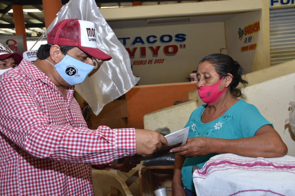 Recorriendo el mercado y parte del Centro de Coyuca de Benitez, Marco Tulio Sánchez platicó con vecinos de la necesidad de que la 4T llegue al estado de Guerrero.