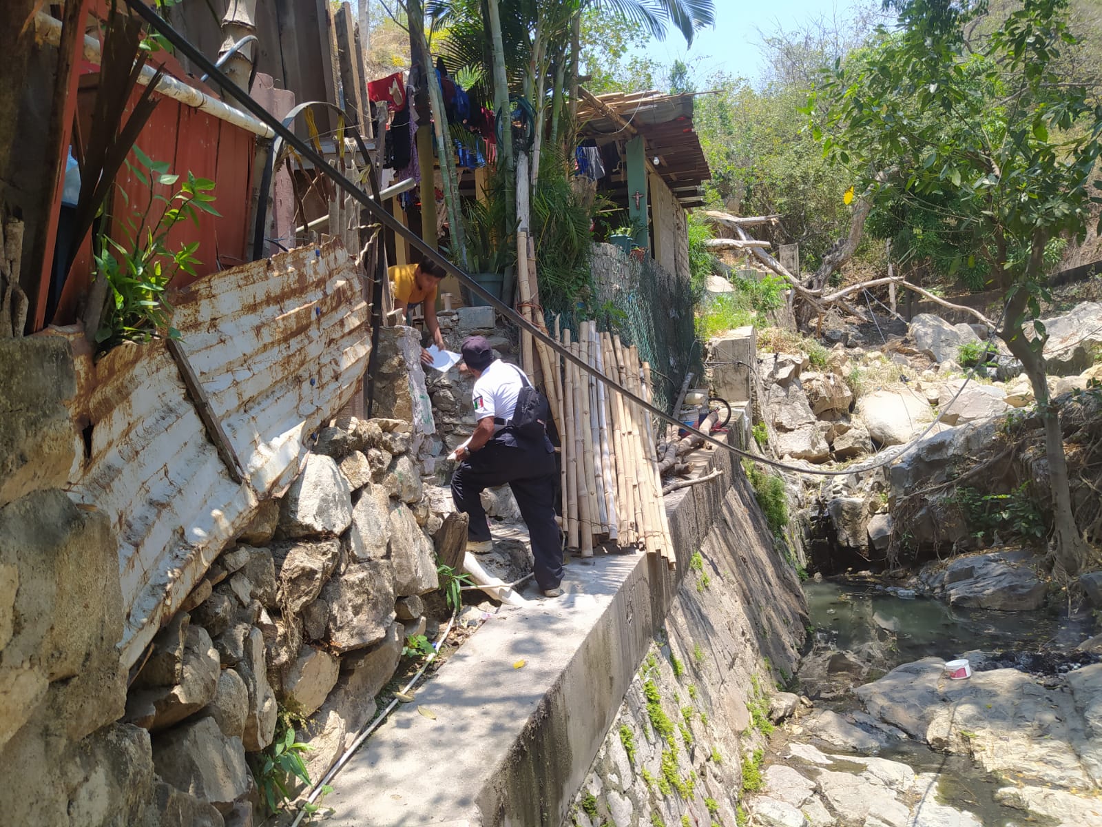 Acapulco, Gro., 04 de mayo de 2023.– Como parte de las acciones preventivas, previas a la temporada de lluvias 2023, personal del Departamento de Atención a Zonas de Alto Riesgo y Bomberos, dependiente de la Coordinación de Protección Civil, realizó más de mil notificaciones a viviendas ubicadas en zonas de alto riesgo en diversos puntos del municipio.