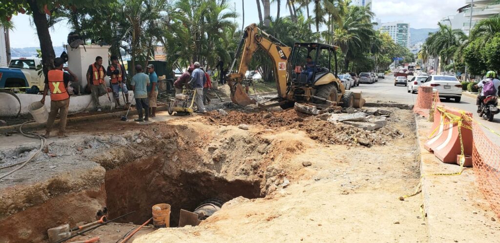 Acapulco, Gro, a 22 de septiembre del 2022.-* La Comisión de Agua Potable y Alcantarillado del Municipio de Acapulco (Capama), informa a la población que, continúan los trabajos para la sustitución de diez metros del colector de aguas residuales ubicado sobre la costera Miguel Alemán a la altura del hotel Romano Palace, obra que, hasta el momento lleva un avance del 90 por ciento y se espera sea concluida el próximo sábado.