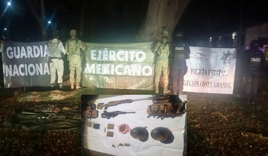 La Unión de Isidoro Montes de Oca, Gro. 6 de enero del 2026. La Secretaría de Seguridad Pública del Estado informa que, en acciones operativas interinstitucionales realizadas en el municipio de La Unión, personal de la Guardia Nacional, Ejército Mexicano y Policía Estatal, adscrita a la Base de Operaciones Interinstitucionales “BOI La Unión”, aseguró armamento, cartuchos, equipo táctico y probable droga.