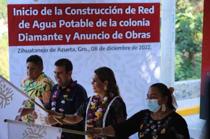 Guerrero Evelyn Salgado y Jorge Sánchez dan banderazo de inicio de la construcción de la red de agua potable en la colonia Diamante de Zihuatanejo diciembre 8, 2022