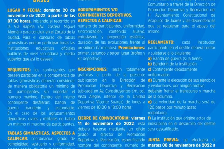 Acapulco Alista Gobierno Municipal desfile cívico deportivo para conmemorar aniversario de la Revolución Mexicana noviembre 8, 2022