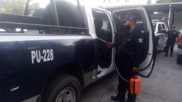 Sanitizan áreas y patrullas de la SSP en Acapulco