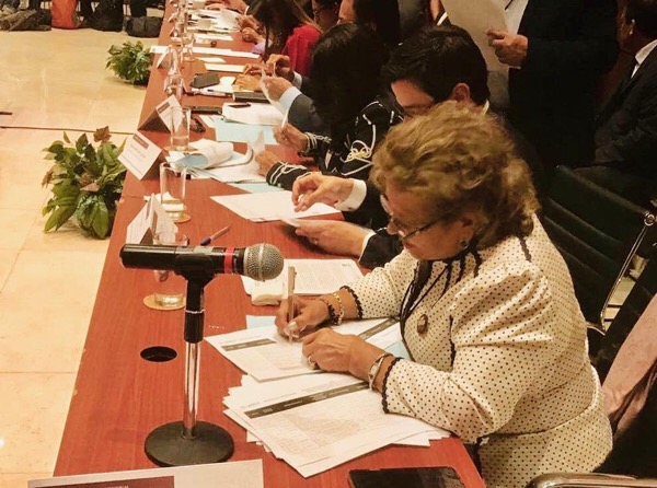Firma Adela Román convenio de Mejoramiento Urbano 2019