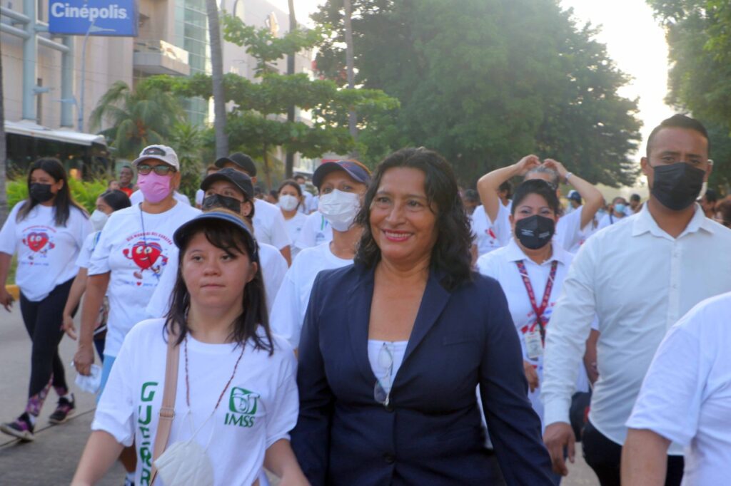Acapulco, Gro., 09 de octubre de 2022.– Para promover el cuidado de la salud, fomentar la prevención, control y tratamiento de las enfermedades cardiovasculares, la presidenta municipal de Acapulco, Abelina López Rodríguez, participó en la caminata por el Día Mundial del Corazón.