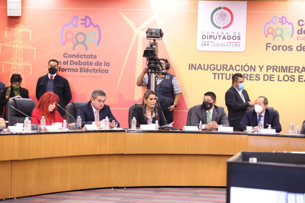 En su mensaje ante las y los ejecutivos locales del país, reconoció el esfuerzo de carácter nacionalista del presidente López Obrador y enfatizó su respaldo a la iniciativa presidencial de Reforma Eléctrica, no solamente por la importancia que el sector eléctrico representa como palanca de desarrollo para México, sino por la perspectiva histórica y de soberanía Nacional de defensa de nuestro país y de los intereses de las y los mexicanos frente a los intereses de unos cuantos.