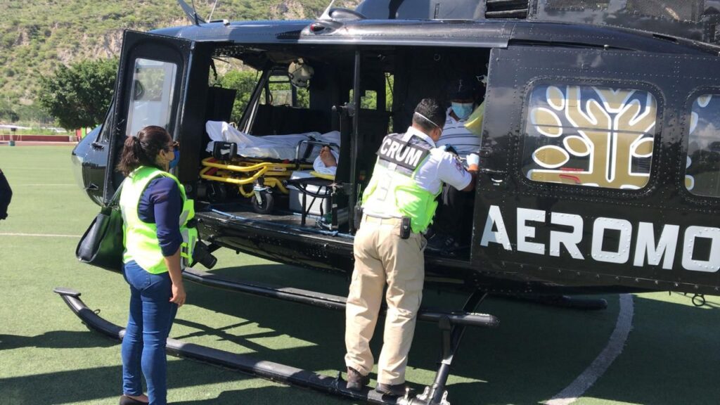 El traslado fue coordinado por el Centro Regulador de Urgencias Médicas (CRUM Guerrero), desde el Hospital General de Tlapa de Comonfort al Hospital General de El Quemado de Acapulco, en una unidad aérea de la Secretaría de Seguridad Publica con matrícula XC-LLK.