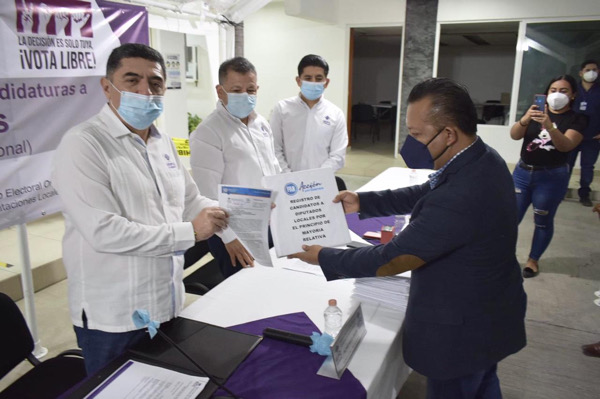 El líder estatal del Partido Acción Nacional, Eloy Salmerón Díaz, fue el encargado de entregar la lista de los candidatos para participar en el Proceso Electoral Ordinario en donde se elegirán Gubernatura del Estado, Diputaciones Locales y Ayuntamientos 2020-2021. De conformidad con lo previsto en los artículos 274 de la Ley Electoral local; y 74 de los lineamientos referidos, cabe señalar que el Consejo General de este instituto electoral, revisará que la solicitud cumpla con los requisitos de ley, y resolverá lo que en derecho corresponda dentro del plazo del 1° al 3 de abril del 2021.