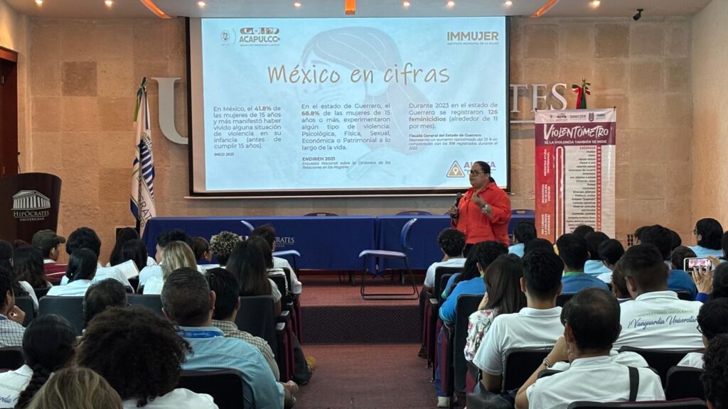 Acapulco, Gro., 19 de noviembre del 2024.- El Gobierno Municipal que encabeza la Presidenta Abelina López Rodríguez a través del Instituto Municipal de la Mujer (IMMUJER) ofreció la plática “Las diversas manifestaciones de violencia contra las mujeres: acciones para su atención” a estudiantes universitarios.