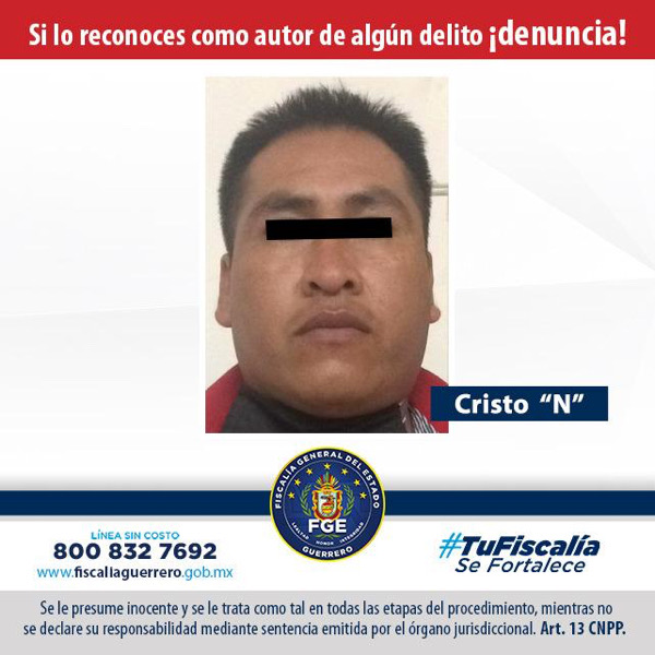 La Fiscalía General a través del Ministerio Público obtuvo prisión preventiva en contra de Cristo “N”, acusado como probable responsable de secuestro agravado en el municipio de Huamuxtitlán, Guerrero.