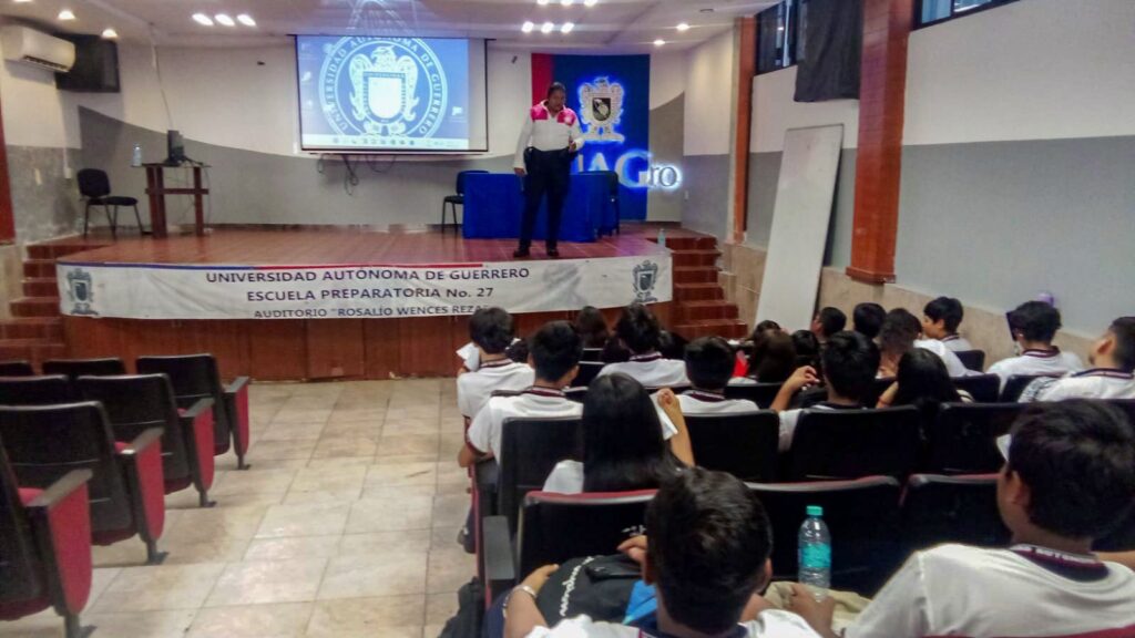 Acapulco, Gro., 18 de noviembre de 2025.- Con el objetivo de prevenir la violencia en entornos escolares, la Policía de Género, adscrita a la Dirección Especializada para la Atención de la Violencia Familiar y de Género, impartió la conferencia titulada “Violencia Digital” en la Preparatoria Número 2 de la Universidad Autónoma de Guerrero, ubicada en avenida Ruiz Cortines, esquina Paseo de la Cañada, en la colonia Infonavit Alta Progreso.