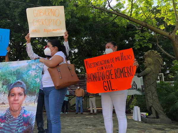 En las pancartas se podía leer “Justicia”, “Gobierno corrupto” y “AMLO ayúdanos”. La afligida madre se veía desconectada de lo que pasaba, pues lo único que ella desea es poder ver y abrazar a su hijo.