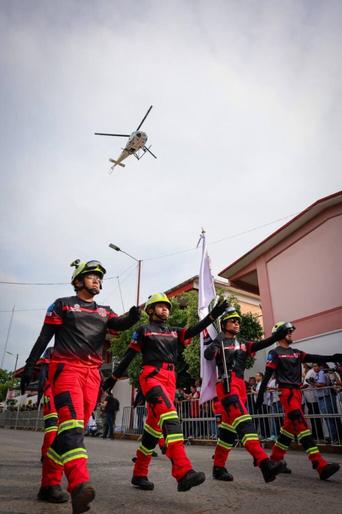 El contingente estuvo conformado por instituciones de seguridad pública, protección civil, brigadistas, bomberos y estudiantes de diversas escuelas de Chilpancingo, además de la participación de transportistas de Protolco Violeta y la Federación Mexicana de Charrería, quienes desfilaron por la Avenida “Vicente Guerrero”, conmemorando el Inicio de la Independencia de México.