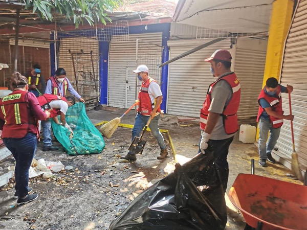 Acapulco, Gro., 29 de julio de 2020.- Para erradicar puntos negros en la ciudad y contrarrestar la proliferación del mosco trasmisor del dengue, zika y la chikungunya, trabajadores de la dirección de Mercados y Centrales de Abasto realizaron limpieza integral en el mercado El Parazal.