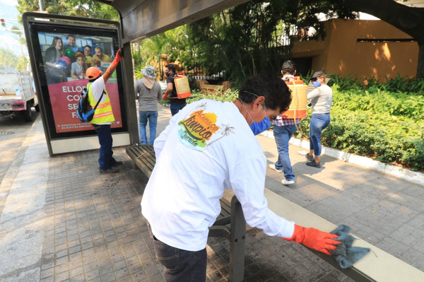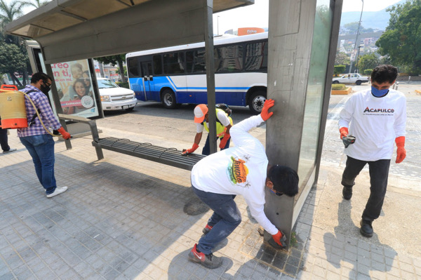Realizan limpieza y desinfección de elementos urbanos en Acapulco