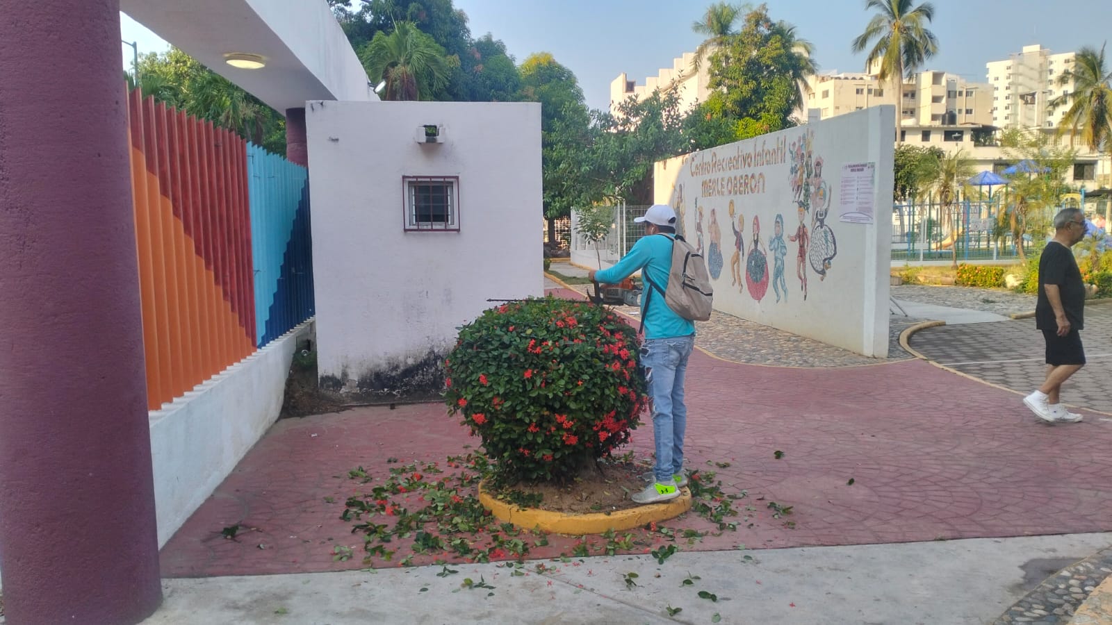 “Tenemos un listado que se va a intervenir por la dirección de Áreas Verdes, vamos a continuar en la parte de Ciudad Renacimiento, Cayaco, Coloso, vamos a intervenir los parques y también en Costa Azul en el parque Merle Oberón con 20 personas, ya llevamos dos días en esa zona, ya vamos a terminar con ese parque”, detalló Hernández Juárez.