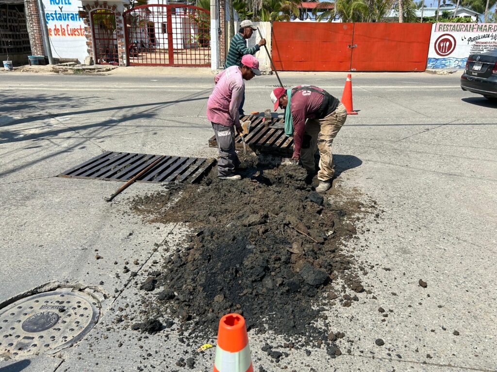 Esta semana se intervendrán 35 rejillas en Pie de la Cuesta. Los trabajos incluyen el retiro de tapas, la extracción de azolve principalmente tierra y lodo, así como la recolección de basura, botellas de PET, bolsas plásticas y otros residuos sólidos.