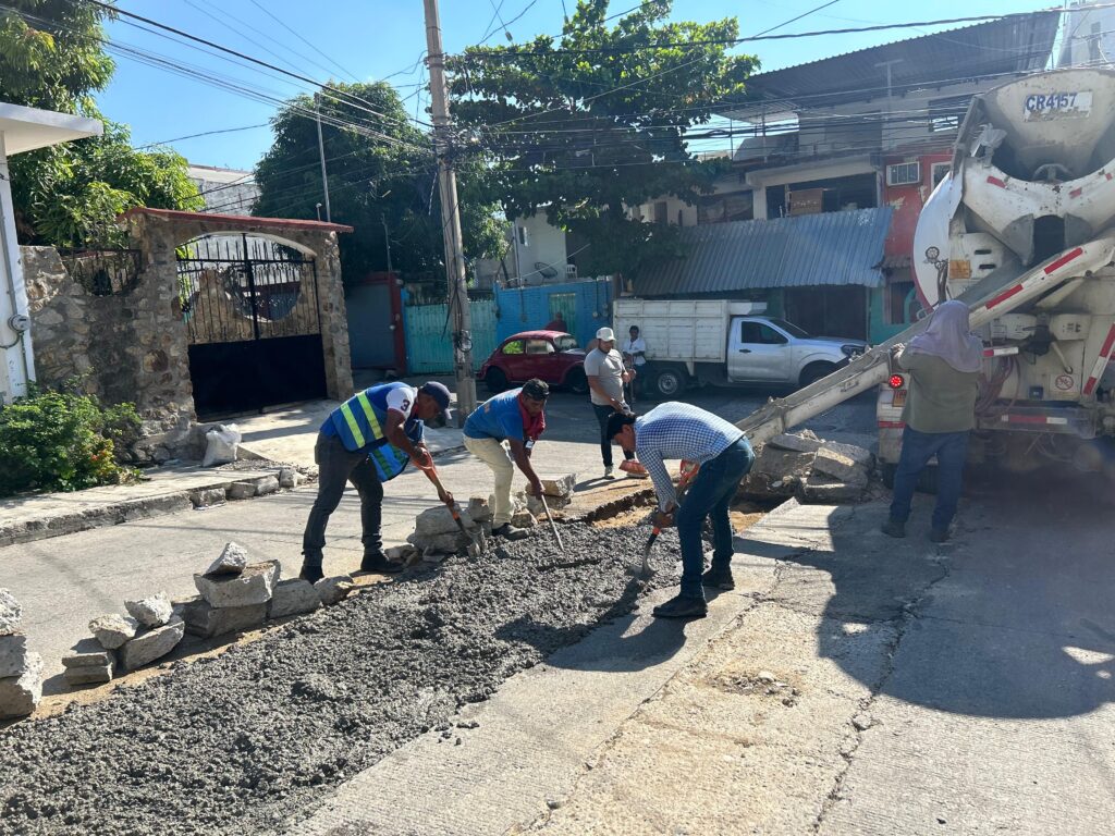 Acapulco, Gro., 27 de junio de 2025.- Con una política de pronta respuesta a las demandas ciudadanas, el Gobierno que encabeza la Presidenta Municipal, Abelina López Rodríguez a través de la dirección de Maquinaria Pesada y Parque Vehicular mantiene su programa permanente de rehabilitación de vías con concreto hidráulico.