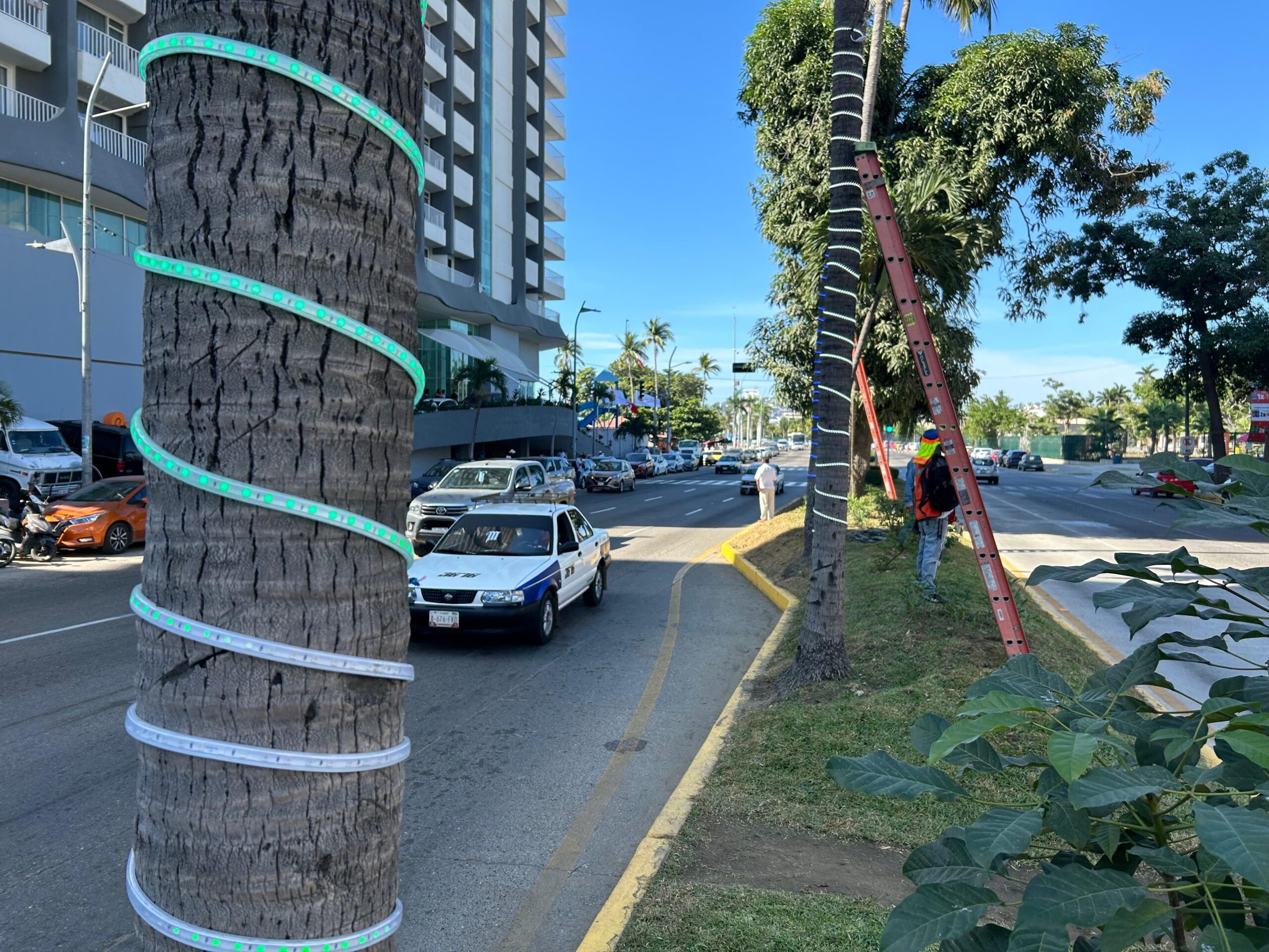 El director reiteró que se ha realizado la decoración de 250 palmeras y glorietas como la de la Diana y el Centro Internacional Acapulco, con la finalidad de dar una buena imagen a acapulqueños y turistas que se encuentran en el puerto para recibir el 2025.