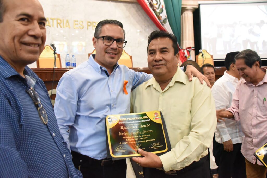 En esta ceremonia, que se llevó a cabo en el auditorio del Tribunal Superior de Justicia, el Club de Periodistas “ Primera Plana” entregó reconocimientos a 32 periodistas guerrerenses por su trayectoria periodística de 25 a 50 años de ejercicio periodístico, y que contó con la presencia del presidente de esta organización, José Luis Uribe Ortega, quien reconoció el compromiso del gobierno de Guerrero para respetar y fomentar la libertad de expresión.