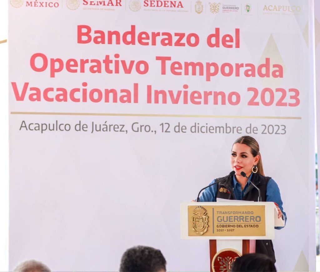 En su mensaje, la mandataria estatal reconoció el apoyo de todas las instituciones que participan en este operativo de fin de año, y que desde hace más de dos meses se encuentran en Acapulco atendiendo la emergencia del huracán Otis, con el objetivo de que este destino de playa este limpio y listo para recibir a sus visitantes.