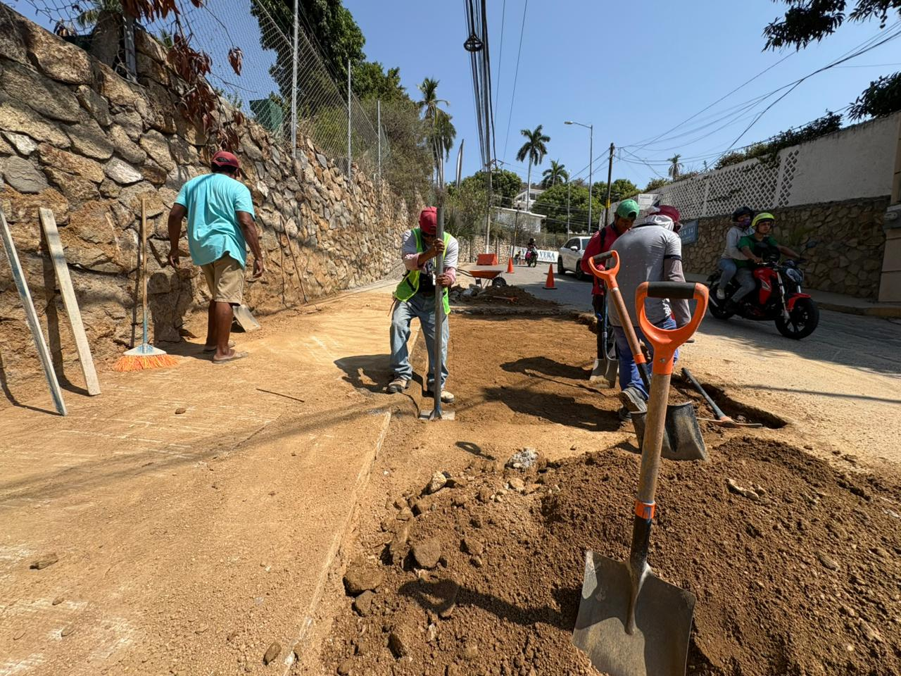 En el fraccionamiento Costa Azul, en la calle Horacio Nelson esquina con avenida Niños Héroes de Veracruz y calle Comandante Baresford, se repara una línea de agua potable de 12 pulgadas de diámetro con apoyo de maquinaria pesada, con el fin de atender la afectación y restablecer el flujo a los hogares del área.