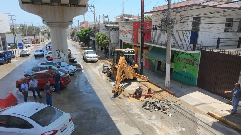 El director general del organismo, Hugo Lozano Hernández informó que, desde la mañana de este martes, personal operativo repara una fuga registrada en dicha vialidad en una línea de 24 pulgadas de diámetro, misma que alimenta las colonias Mozimba, Juan R. Escudero, Palomares, La Mira y alrededores en la cual se perdían hasta 10 litros por segundo.