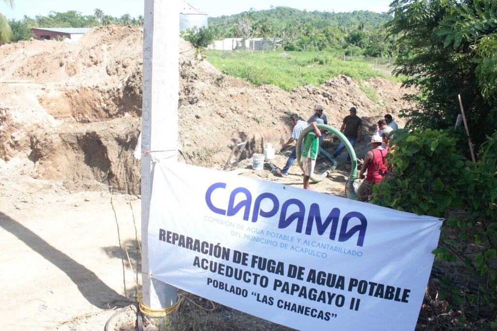 Acapulco, Gro., 24 de julio de 2024- El Gobierno que preside Abelina López Rodríguez a través de la Comisión de Agua Potable y Alcantarillado del Municipio de Acapulco (CAPAMA), lleva a cabo trabajos de reparación de fugas de importancia en los acueductos Papagayo I y II.