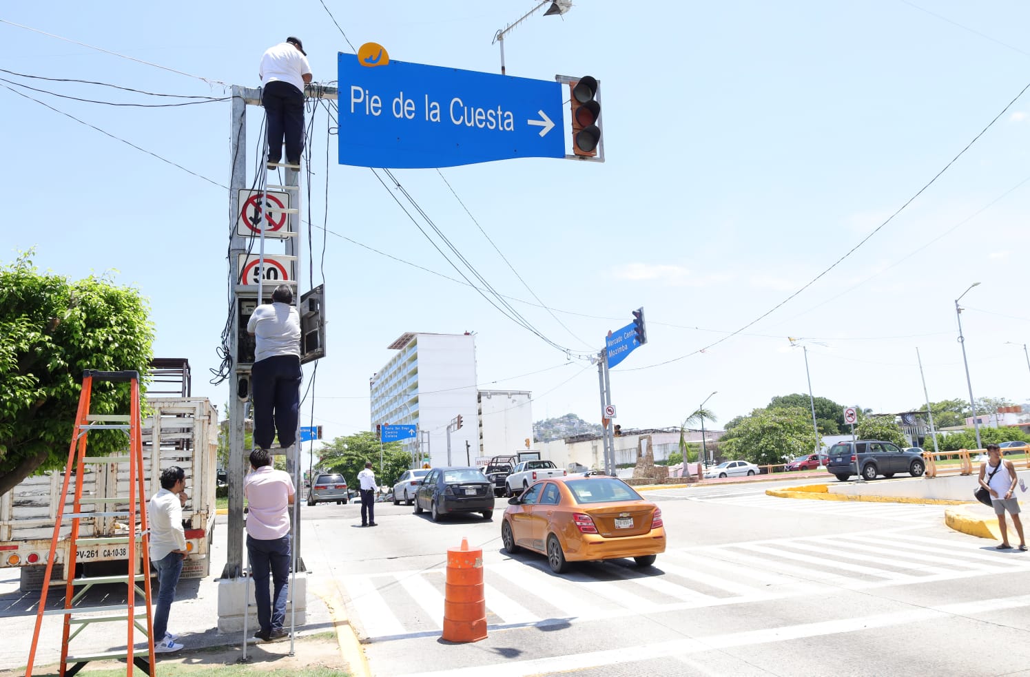 Acapulco, Gro., 03 de julio de 2023.- Acatando la indicación de Abelina López Rodríguez, presidenta municipal, la Coordinación de Movilidad y Transporte realizó trabajos de reparación de semáforos en avenidas principales de la ciudad, que sufrieron daños por las lluvias de este fin de semana.