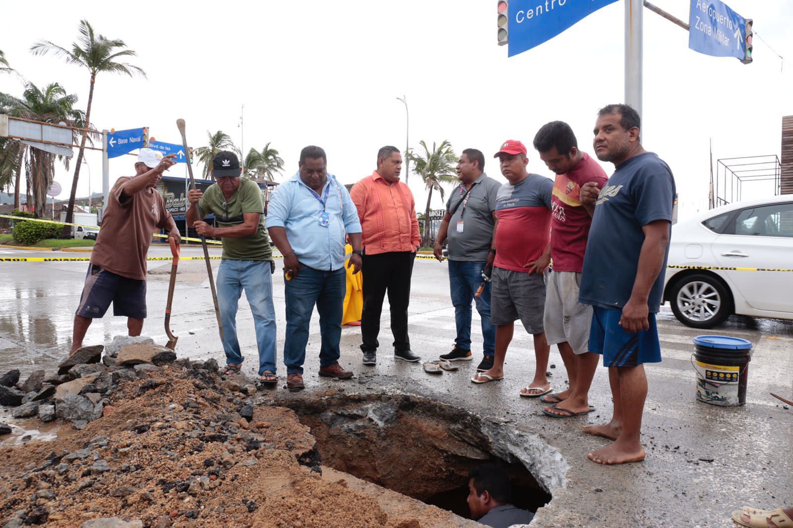 Asimismo, en el entronque de la calle El Morro y la Costera Miguel Alemán, se afectó una línea de gravedad de 24 pulgadas que conduce aguas residuales de los hoteles; ya se reparan tres metros de tubería.