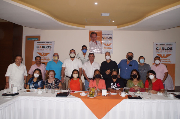 Carlos Reyes Paris, candidato a diputado local por el 04 Distrito por Movimiento Ciudadano, cada día suma más grupos de apoyo a su campaña con la formulación de sus propuestas y esta tarde el Colectivo Proveedores Unidos por Acapulco le reiteró su respaldo.
