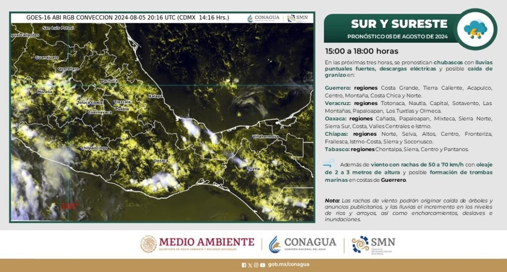 Acapulco, Gro., 05 de agosto de 2024- El Gobierno que encabeza la Presidenta Abelina López Rodríguez hace el llamado a la población a tomar precauciones ante el pronóstico de lluvia para Acapulco.