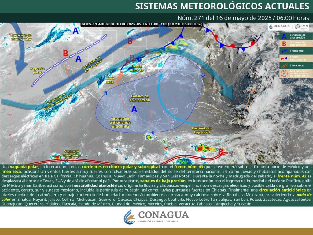 En su reporte matutino, con información del Servicio Meteorológico Nacional (SMN), la dependencia indicó que una circulación anticiclónica en niveles medios de la atmósfera y el bajo contenido de humedad, mantendrán ambiente caluroso a muy caluroso sobre la República Mexicana, prevaleciendo la onda de calor en Guerrero.