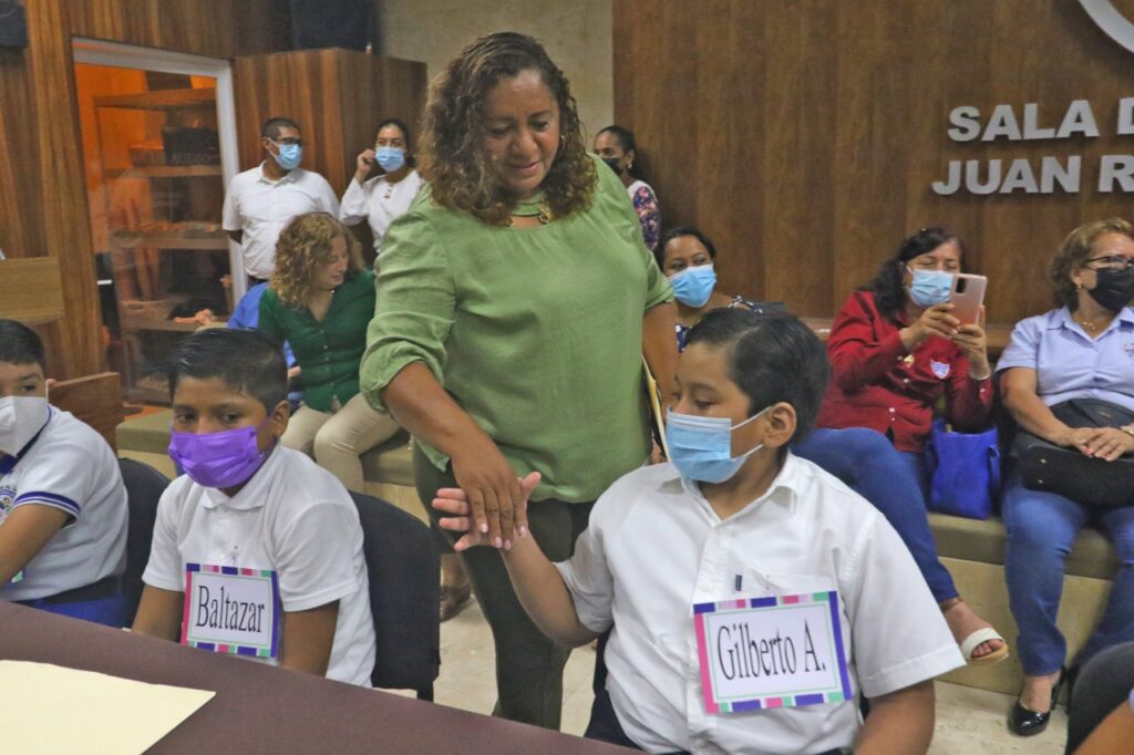 “Como titular de la Secretaría de Bienestar y Desarrollo Comunitario, me siento muy orgullosa de verlos participar, me queda muy claro que van a dar unas participaciones bien fundamentadas con todo el conocimiento que han adquirido en sus escuelas. Les invito a que no tengan miedo de expresar sus pensamientos, ya que todos los argumentos que hoy se den en este cabildo son válidos, para nosotros su opinión es importante, queremos escuchar su voz”, dijo.