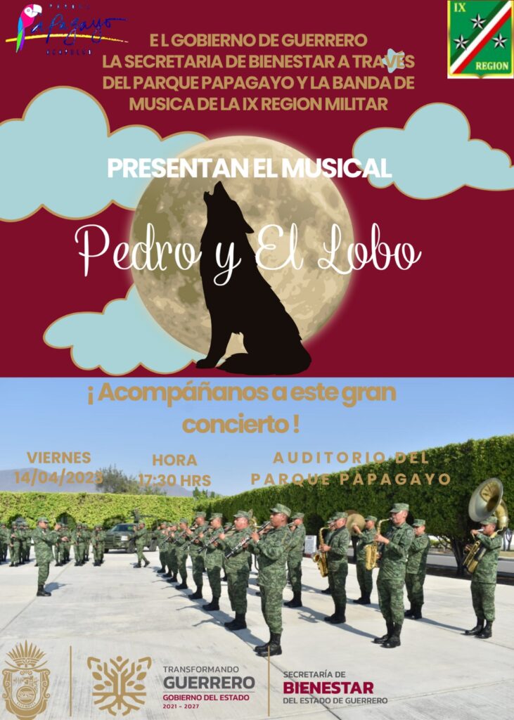 El director general del Parque Papagayo, Abel Luvio Villanueva informó que en colaboración con la IX Región Militar, la banda de música realizará dos presentaciones, la primera será el próximo viernes 14 de abril con el musical “Pedro y El Lobo”, el cual se llevará a cabo a las 6 de la tarde en el auditorio del Parque.