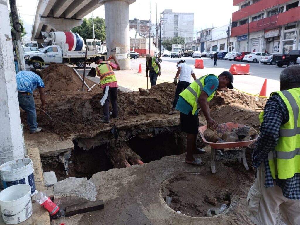 De igual manera, por parte del área de Alcantarillado se atiende la rehabilitación de un tramo de red sanitaria de 12 pulgadas de diámetro que sufrió asentamiento en la calle Alemania esquina con la Costera Miguel Alemán.