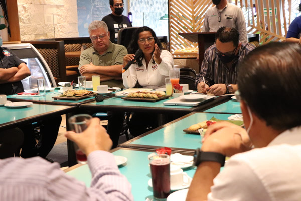 En otra reunión, con integrantes de la asociación Aislados pero Unidos, que aglutina a más de 150 empresarios restauranteros, expusieron algunos de los problemas que enfrentan, sobre todo por el atraso en el pago de licencias, algo que se dio por la cuestión de la pandemia, por lo que pidieron a la candidata que cuando llegue a la alcaldía tome en cuenta este tema.