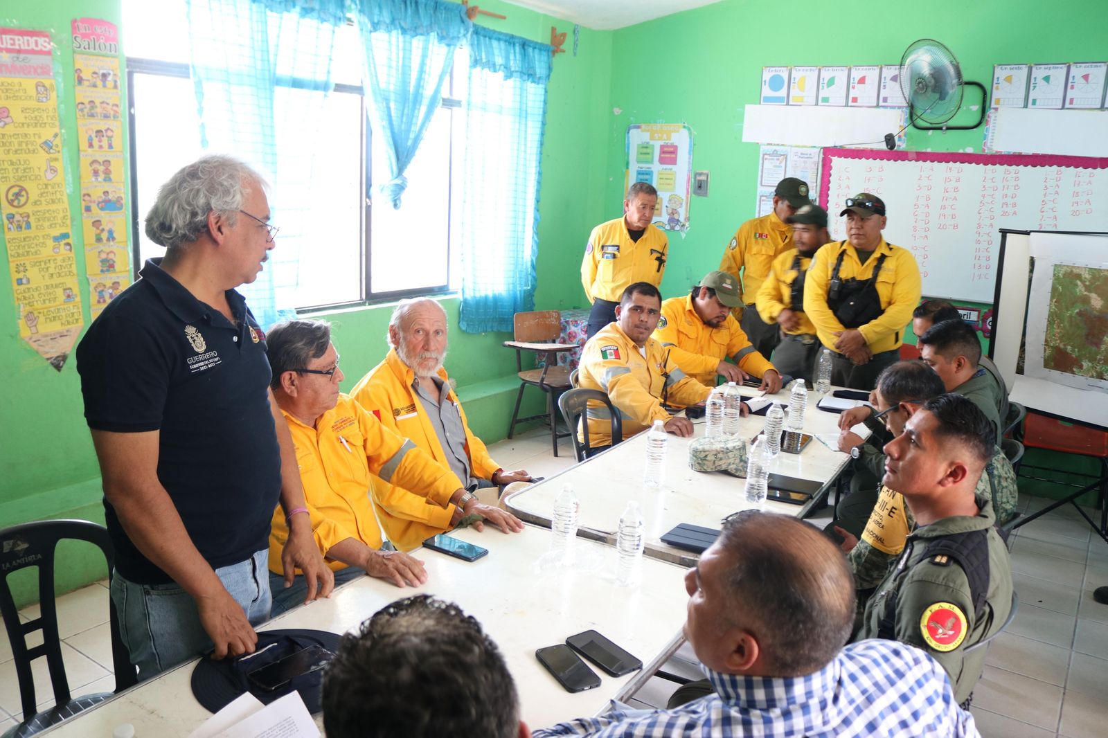 En la reunión se encuentra el secretario de Gestión Integral de Riesgos y Protección Civil, Roberto Arroyo Matus; el titular de la Promotoría de Desarrollo Forestal en Guerrero, Carlos Toledo Manzur; el Secretario de Medio Ambiente y Recursos Naturales del Estado, Ángel Almazán Juárez, el presidente Municipal de Igual, Erik Catalán Rendón; el Subsecretario de Prevención y Reducción de Riesgos, Ricardo Ramírez Ibarra, así como mandos militares